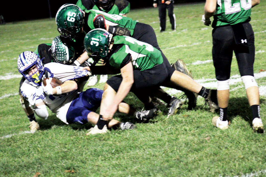 - Waterford’s Hayden Jones gets wrapped up by a Danville defender during Friday’s Ohio Division VII regional semifinal. (Photo by Kerry Patrick)