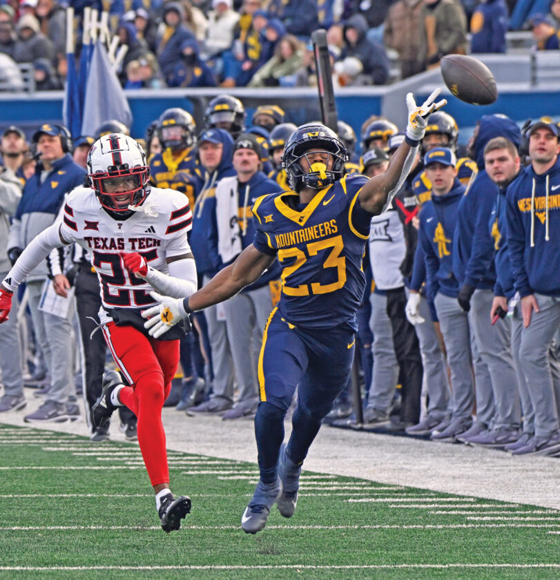 A pass sails out of the reach of West Virginia’s Cyncir Bowers (23) during Saturday’s regular season finale against Texas Tech. (Photo by David Pennock)