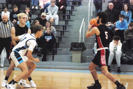 The 1-3 Red Devils of first year head coach Kevin Boak, who play host next Friday to St. Marys, trailed 18-8 after Trevor Mayle connected from downtown. Consecutive deuces by Nelson, both coming via Francisco assists, made it 26-10 and the visitors were still doubled up after Charter Cottrell’s 3 via a Chase Schoolcraft dish beat the horn by a second.