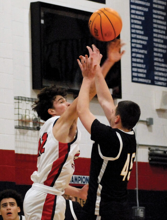 Chase Offenberger’s steal and assist to Joyce, who threw one down, followed as the Patriots took the lead for good. Coach Frazier called timeout after turning the ball over against the press as Joyce got a steal and a dime via a layup by Mullen.