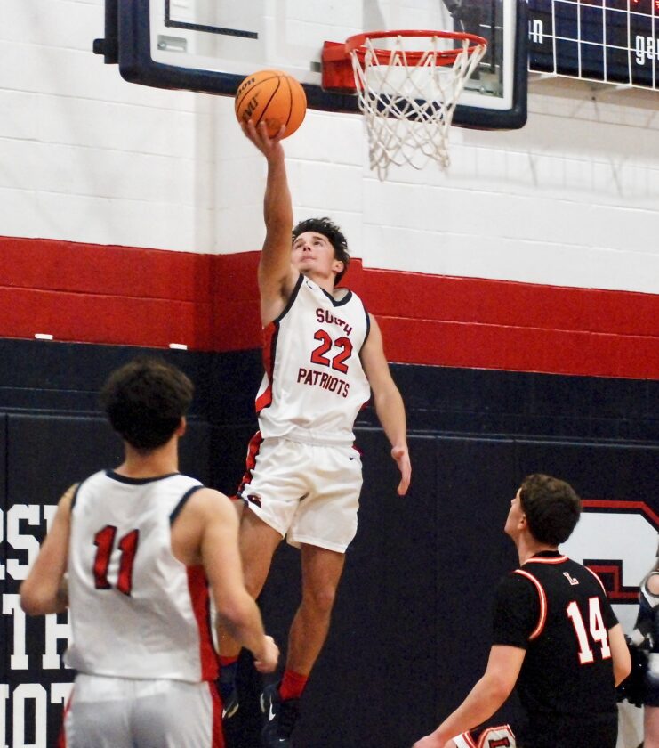 Just as the clock approached 20 seconds remaining, Logen Arnold found Ethan Sands open for a triple – South’s 17th – as the Patriots reached the century mark for the first time since Feb. 28 of 2023 during a 100-59 win versus Hurricane at the ROAC.