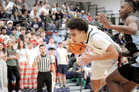 South then amped it up on the glass and limited Spring Valley to multiple one-and-dones. On the other end, the Patriot offense fell into a rhythm and went on a 13-0 run on the strength of consecutive 3-pointers from Silvis, one set up by a screen from Joyce and another on a fadeaway jumper.