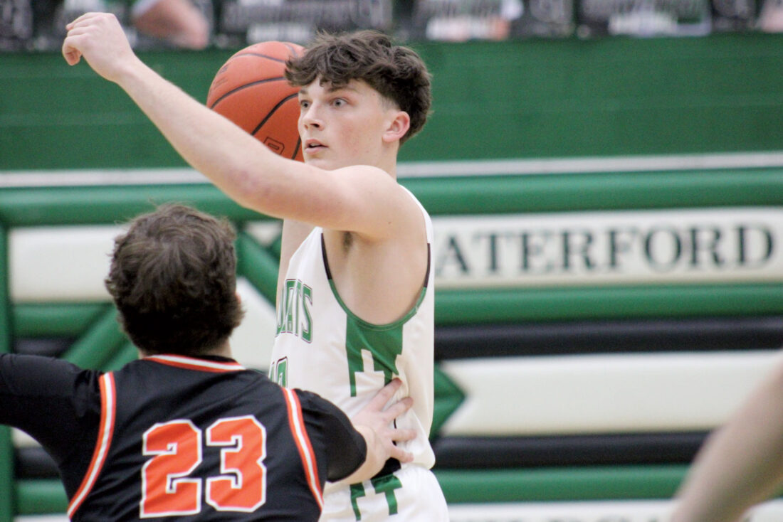 Finn Pennock scored just one point for Waterford, but he found Pottmeyer open across the other side of the court after several Belpre defenders closed off Pennock’s attempt to drive to the hoop.