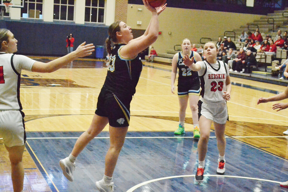 A basket by Frontier senior Anna Bowersock had closed an early Caldwell lead to four late in the first period before a two-pointer by Crock and a three-pointer from Laynie Sidwell gave the Redskins a 15-6 lead.
