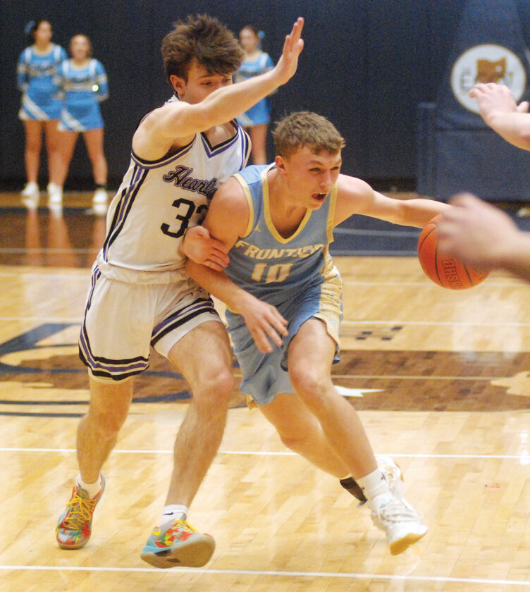 Frontier (12-6) committed turnovers on its first three possessions of the second which led to seven straight points for the Lions, a 12-0 run going back to the first, to make it 29-18. The Cougars clawed back within seven before Collin Kalaher hit back-to-back triples to put Heartland up 36-23. Frontier closed the half on an 8-2 run, which included two 3-pointers by Powell, to get within seven, 38-31, at the break.