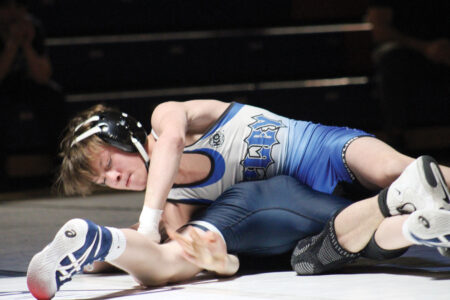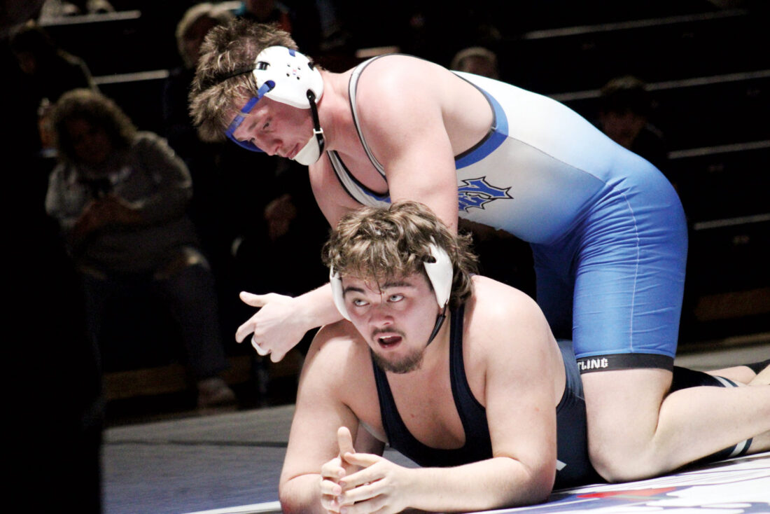 Parkersburg South’s Colton Hill accounted for the Patriots’ first team points when his opponent had to exit with an injury midway into the third period.