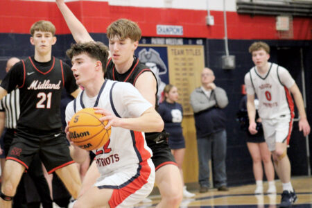 - Parkersburg South senior Harry Silvis scored a game-high 25 points as the Patriots defeated Cabell Midland 63-52, Tuesday at Rod Oldham Athletic Center. (Photo by Kerry Patrick)