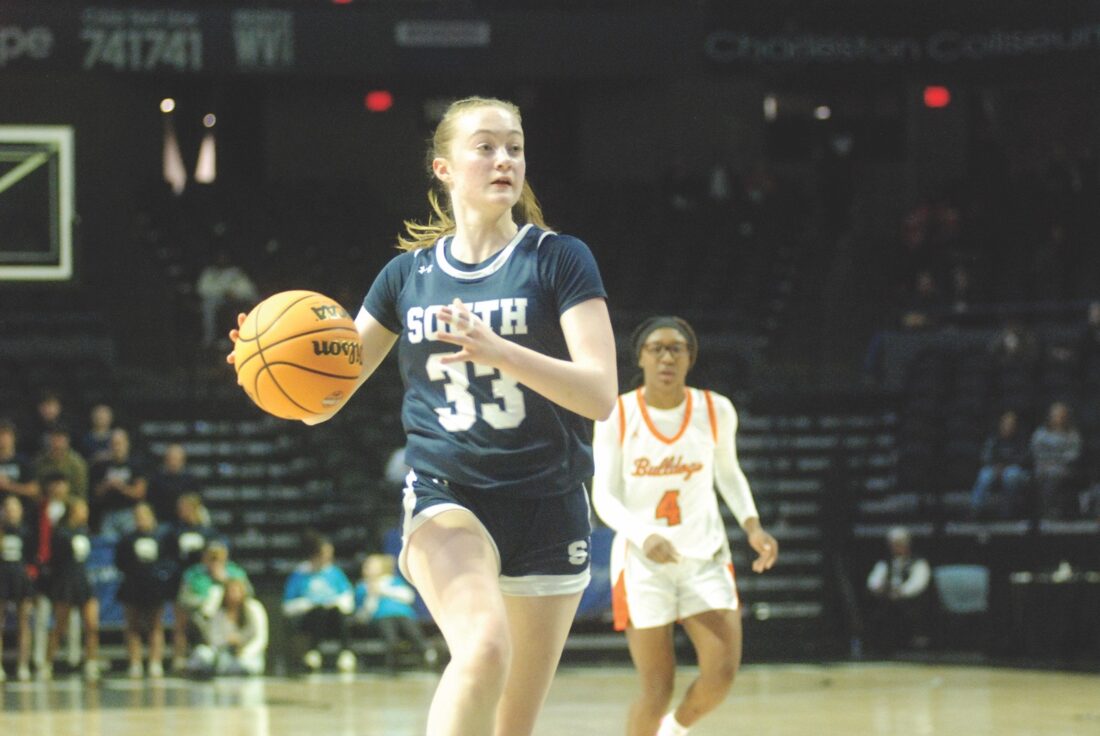 Parkersburg South’s Lindsey Logston handles the ball during a state tournament game in Charleston. (Photo by Jordan Holland)