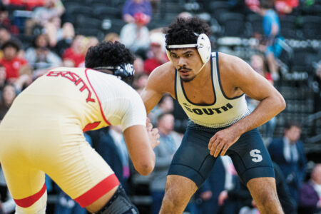 HUNTINGTON — Parkersburg South’s Jesse Adams became the Mountain State’s 28th four-time state champion following the conclusion of Saturday night’s 79th annual state wrestling tournament while the Big Reds of Parkersburg had to settle for a solid runner-up finish behind inaugural Division I champion University, 246-235, after the Hawks had claimed the final two triple-A crowns.