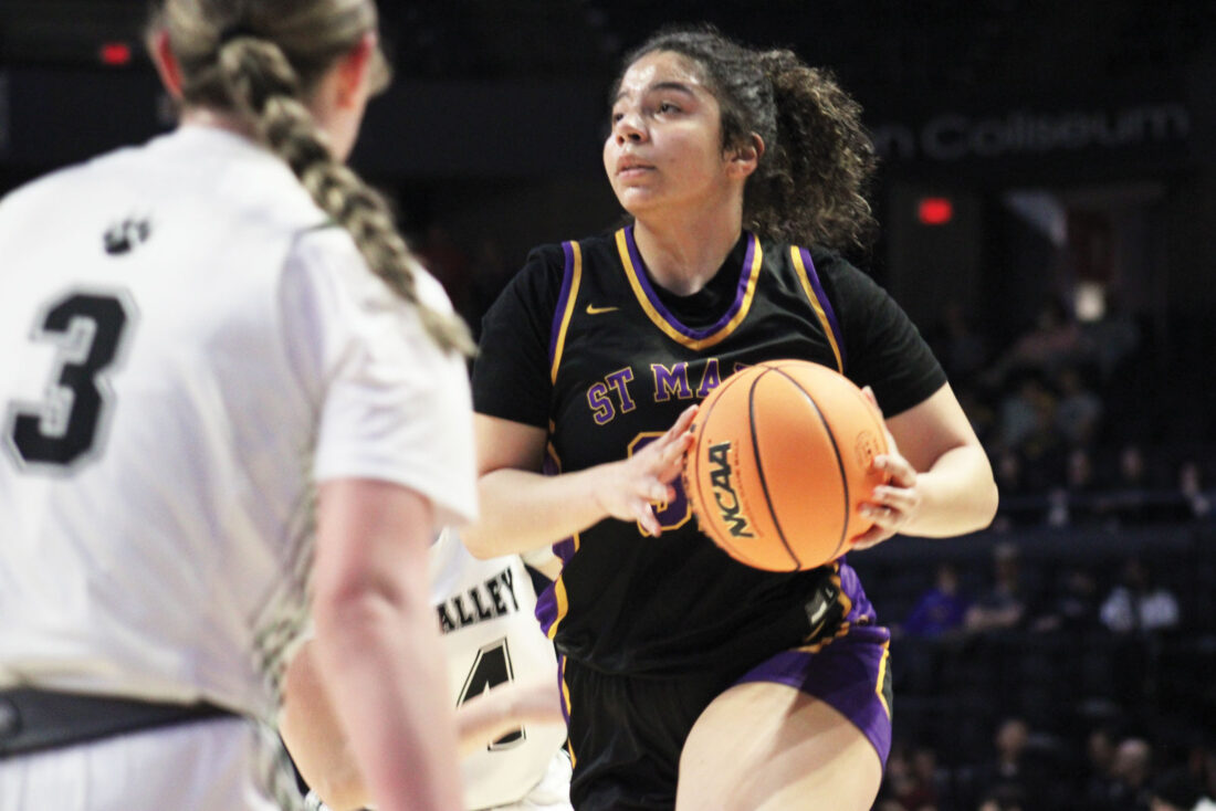 Absent from the scoring column in the opening eight minutes, Anna Bennett became an integral part of St. Marys’ offense in the second quarter – spotting up at the free-throw line and scoring two buckets while adding an assist as the Blue Devils built a 27-18 lead with two minutes remaining before halftime.