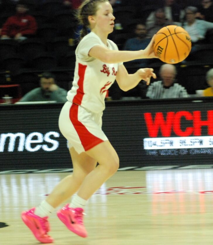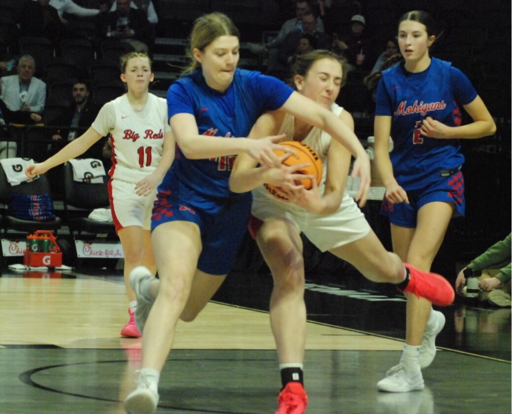 The Mohigans got within a pair, 34-32, at 4:38 of the third when Ava Clinton made two foul shots, but Butcher’s runner was followed by a three-point play from Guice to give the Big Reds some breathing room. However, it was soon 40-39 thanks to a Messerly triple and a Leyton Balderson hoop, but Porter ended the quarter with another make thanks to an Amaya Lewis dime with a second left.