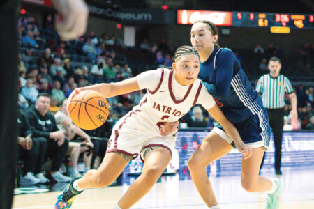 George Washington’s Jeriyah Pryor handles the ball during a state tournament game in Charleston. (Photo by TaKaleb Turner)