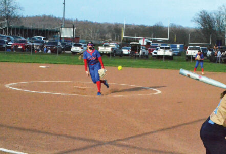 - Fort Frye’s Elle Casto delivers a pitch Monday evening at For Frye High School. Casto picked up a complete game win as the Cadets downed Frontier 7-3. (Photo by Mike Morrison)