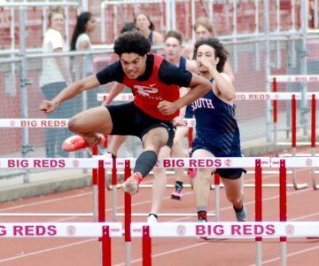 Boys head coach Rod O’Donnell had double-winners thanks to AJ Payne (200, 23:07; 400, 50.18) and Javel Chandler (110H, n/a; 300H, 41.62) as the Big Reds finished with 181 points and were followed by WPHS (128) and Elkins (111).