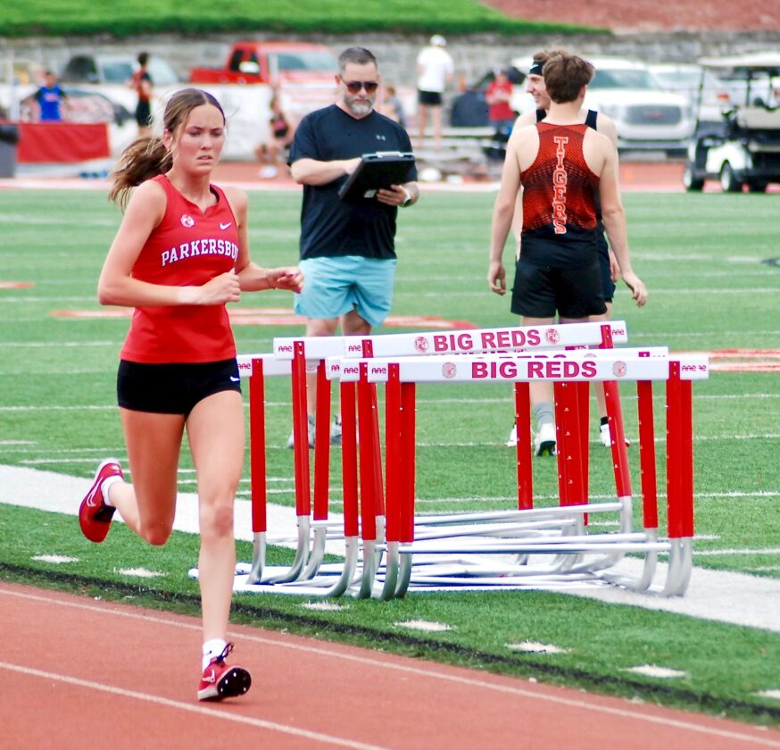 In the pole vault, three thinclads each cleared 7 feet, 6 inches, but Park’s Lillith Smith did it before the Big Red House and fellow teammate Lucy Cartwright. Hastings also cleared 5-4 in the high jump, but had to settle for third.