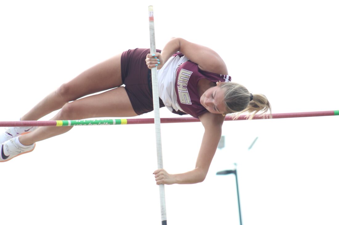 - Williamstown’s Grace Boone finished in first place as an individual in the pole vault after clearing 9-6 during Tuesday’s Fenton Relays at Williamstown High School. (Photo by Kerry Patrick)