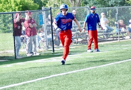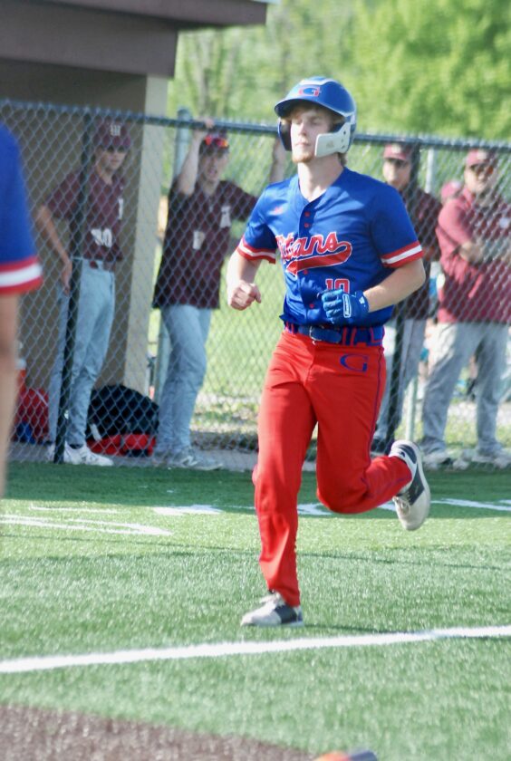 - Gilmer County’s Tyler Ratliff scores in the top of the first during the Titans’ 3-2 Little Kanawha Conference semifinal setback on Tuesday to Williamstown at Bill Coiner Field. (Photo by Jay W. Bennett)