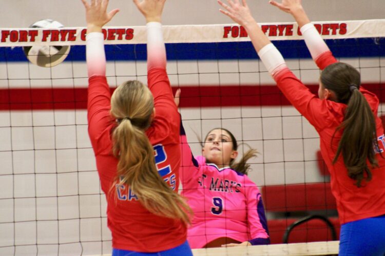BEVERLY — Fort Frye was cruising right along after taking the first two sets from St. Marys when the Blue Devils pulled the plug of any hopes of a possible sweep and forced a fourth set during a high school volleyball match, Thursday night at Fort Frye High School.
