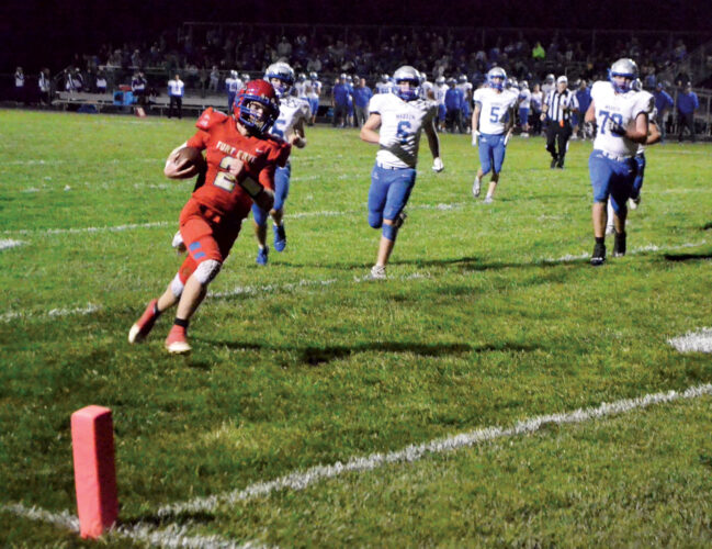 BEVERLY — Fort Frye’s amazing streak of scoreless defensive quarters came to an end Friday night against the visiting Warren Warriors but their more important streak of winning games continued as they rolled to a 46-8 win.