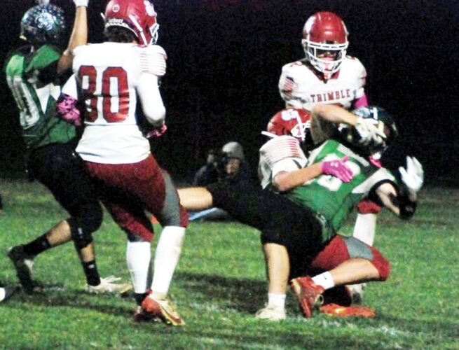 WATERFORD — Trevin Zimmer, Weston Fairchild, Weston Hennes, Ryker Hutchins and Cadon Riley celebrated senior night in a big way here Friday as Waterford scored on all seven of its possessions in the first half en route to a dominating 47-0 victory versus Trimble in what was a Division VII, ...