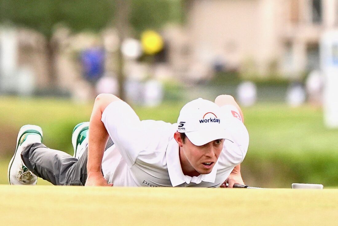 Matt Fitzpatrick, of England, reads the green on the 17th hole during the final round of the RBC Heritage golf tournament Sunday in Hilton Head, S.C. (AP Photo)