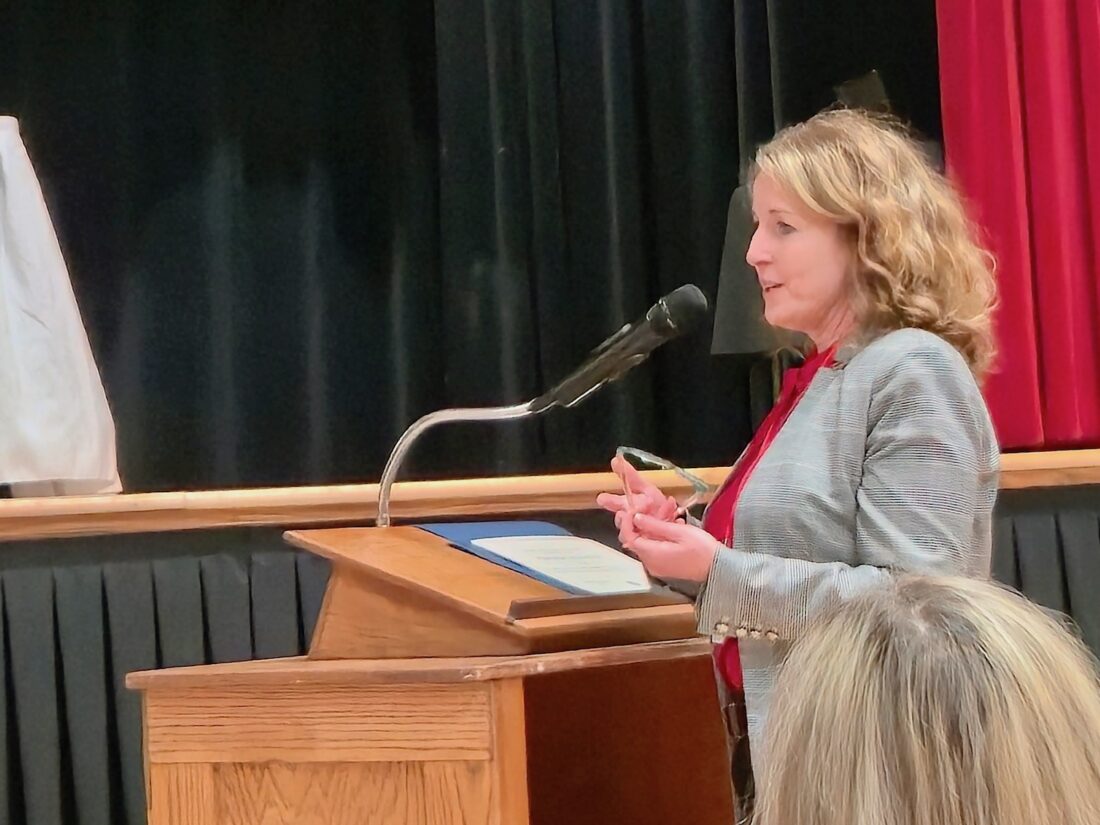 Wood County Superintendent Christie Willis gives recognition to the PHS Foundation for work on the Planetarium. For more information read the full article in the Thursday edition of the Parkersburg News and Sentinel or online at newsandsentinel.com. (Photo by Gwen Sour)