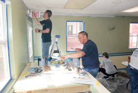 - Volunteers from WVU Medicine Camden Clark Medical Center, including, from left, Kyle Pierson, Walt Newlon and Diana Hudkins, repainted the community room at the Mid-Ohio Valley Fellowship Home Monday as part of the United Way’s Day of Action. (Photo by Evan Bevins)