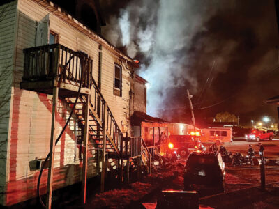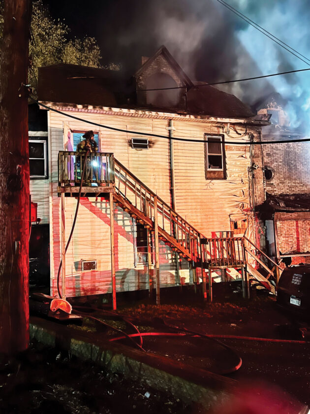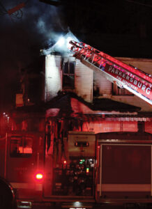 - A fire heavily damaged the apartment complex at 515 Sixth St., Parkersburg, Thursday night. The fire was reported about 5:45 p.m., Fire Chief Jason Matthews said. (Photo by Christina Myer)
