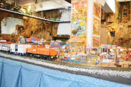 The Mid-Ohio Valley Model Railroad Club is running a temporary O-scale model train while their other O-scale track is under renovation. (Photo by Clara Noelle)