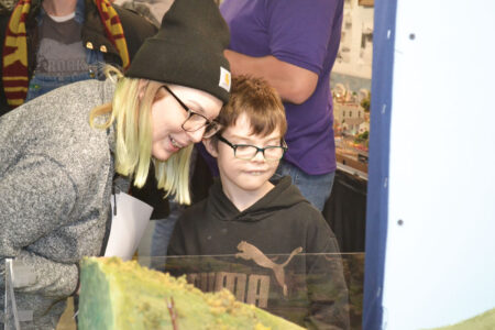 - Jessica Youmans brought her son Cayson Youmans, 8, to the Mid-Ohio Valley Model Railroad Club Louie Creel Memorial Open House Saturday. (Photo by Clara Noelle)