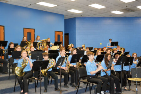 - Members of the Blennerhassett Middle School Symphonic Band go through rehearsals Monday morning in the school’s band room. The group was named West Virginia Music Educators Association’s 2025 Middle School Honor Band. The group will perform at the WVMEA conference on March 7 at 8 p.m in the Little Theater of the Charleston Civic Center. (Photo by Douglass Huxley)