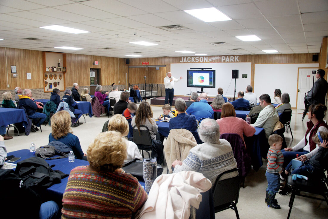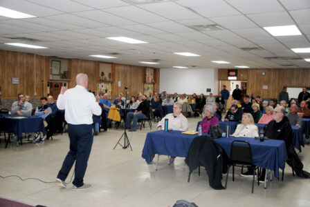 - Approximately 70 people attended a public meeting about the Spencer’s Landing project Tuesday at the Vienna Community Building. (Photo by Evan Bevins)