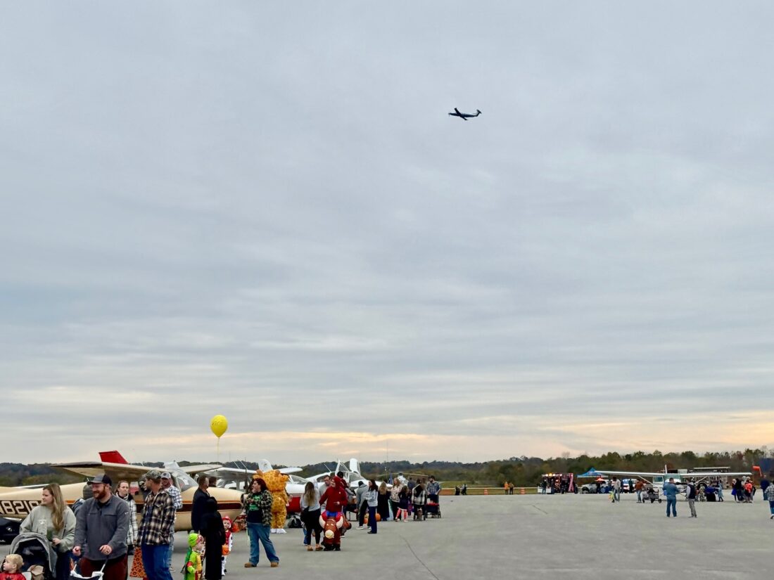 - A plane flies over the Mid-Ohio Valley Regional Airport during the third annual Trunk or Treat on Saturday. (Photo by Amber Phipps)